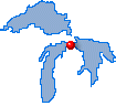 at the transition from Lakes Huron, Michigan and Superior particularly