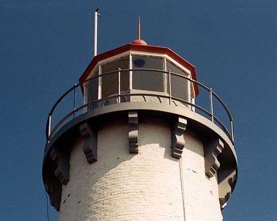 The octagonal lantern atop the Tawas Point Light house. Note the copper ground cable