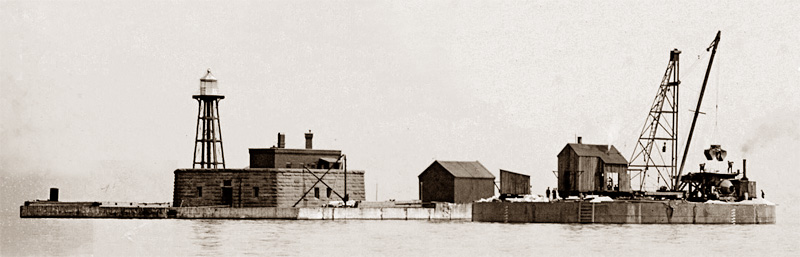 The Edward F Dunne Water Intake Crib under construction off the 68th Street intake crib in 1909 Photograph courtesy of the Chicago Histrical Society