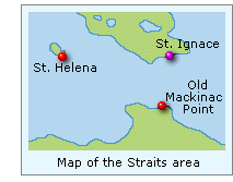 passes by White Shoal, Grays Reef, Waugoshance and St. Helena Island.