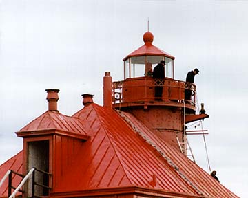 The SUNDEW crew at work on Sturgeon Bay Pierhead Light