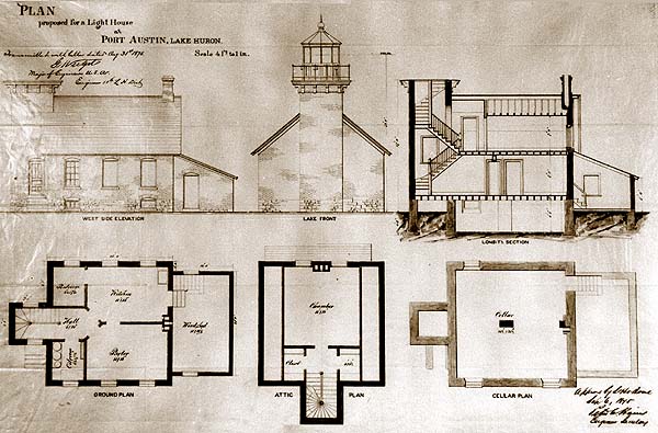 Plans for the original coast light that was to be built at Port Austin in 1877