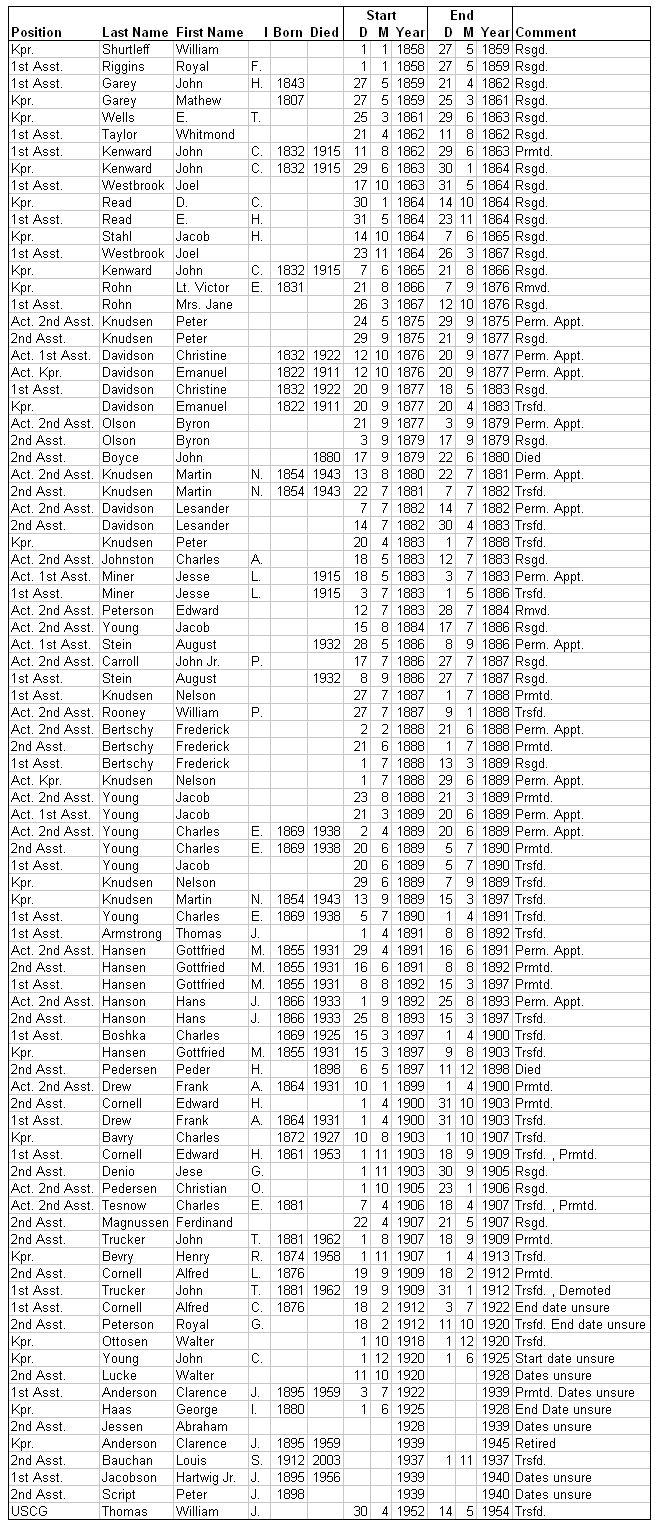 Information compiled by Phyllis L. Tag of Great Lakes Lighthouse Research