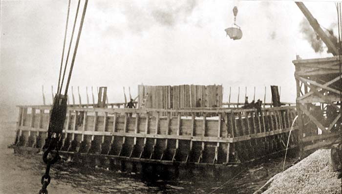 Stone is added to the White Shoal Crib, and forms are added for the concrete superstructure