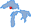 Chicago. We returned the next day at 10.00 a.m. and walked the grounds in a dismal drizzle. The light was terrible this day, as it painted everything with a dull, even cast. We took the uninspiring photographs seen above, and vowed to return again to photograph in a more inspiring light! On the way back to Marquette, we took a 12 mile detour down a sand road to photograph on of the areas waterfalls. After climbing up and down the falls, we were returning to the truck, when Sue stopped and started walking slowly toward the left rear tire. She pointed at a huge nail sticking out of the tire, and proclaimed proudly that she could hear it hissing from fifty feet away! We drove gingerly back to Marquette, checking the tire every couple of miles, and found a tire center that had it plugged in thirty minutes, and we were on our way again! The woman has incredible ears! Guided tours of the lighthouse are available May through September at